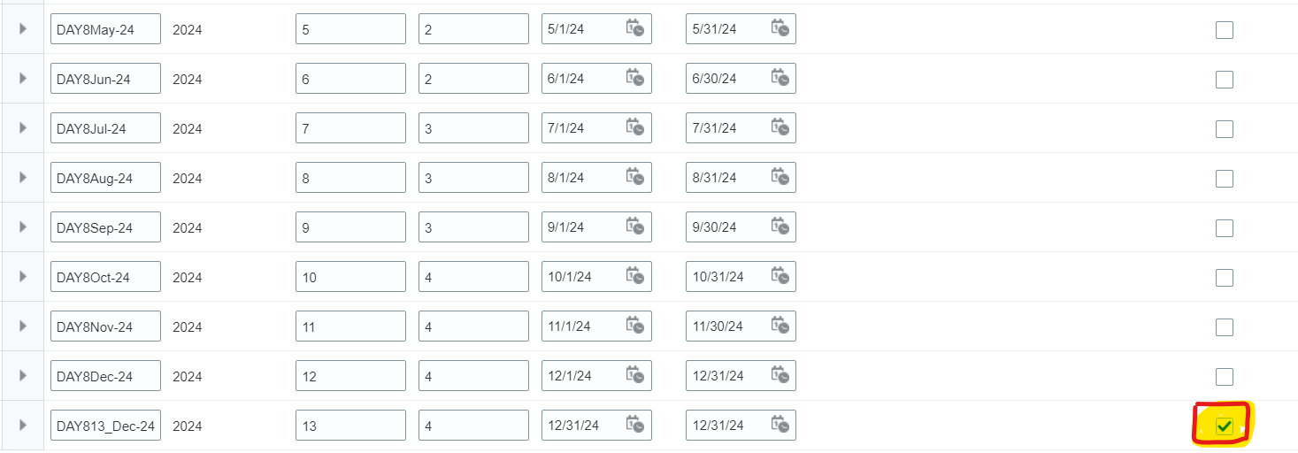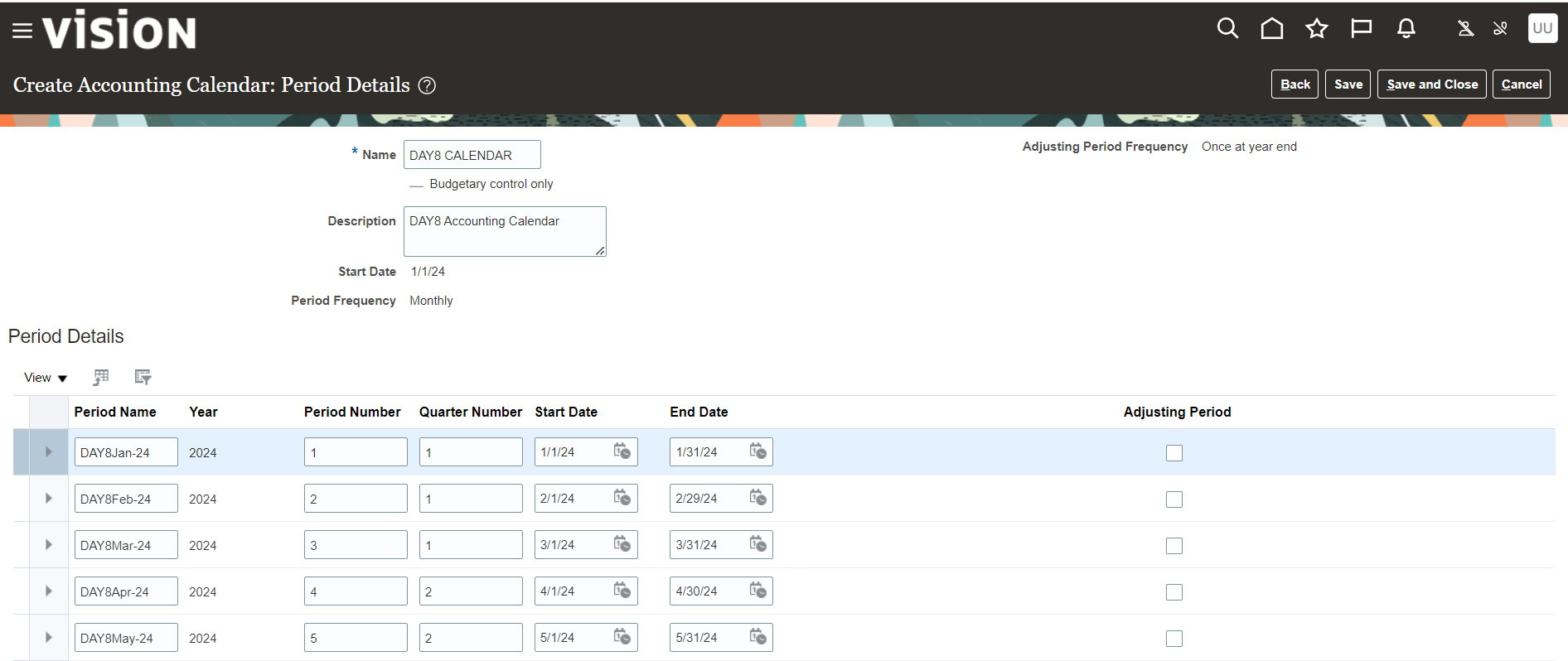 Here’s an example of the Create Accounting Calendar: Period Details page: