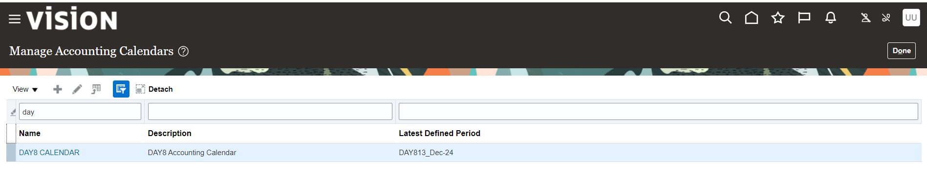 You usually create a single accounting calendar as part of your implementation. The accounting calendar defines the time periods used in the applications. When you create the calendar, you specify the exact dates for each period.