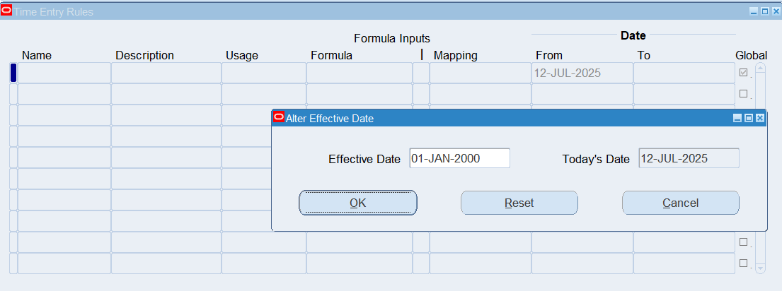 Navigation : (N) Time Entry Rules 🡪 Define Time Entry Rules