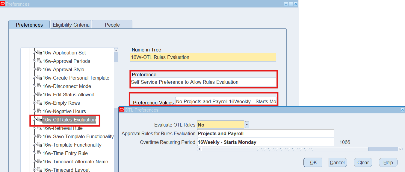 16W-OTL Rules Evaluation Self Service Preference to Allow Rules Evaluation Evaluate OTL Rule = No