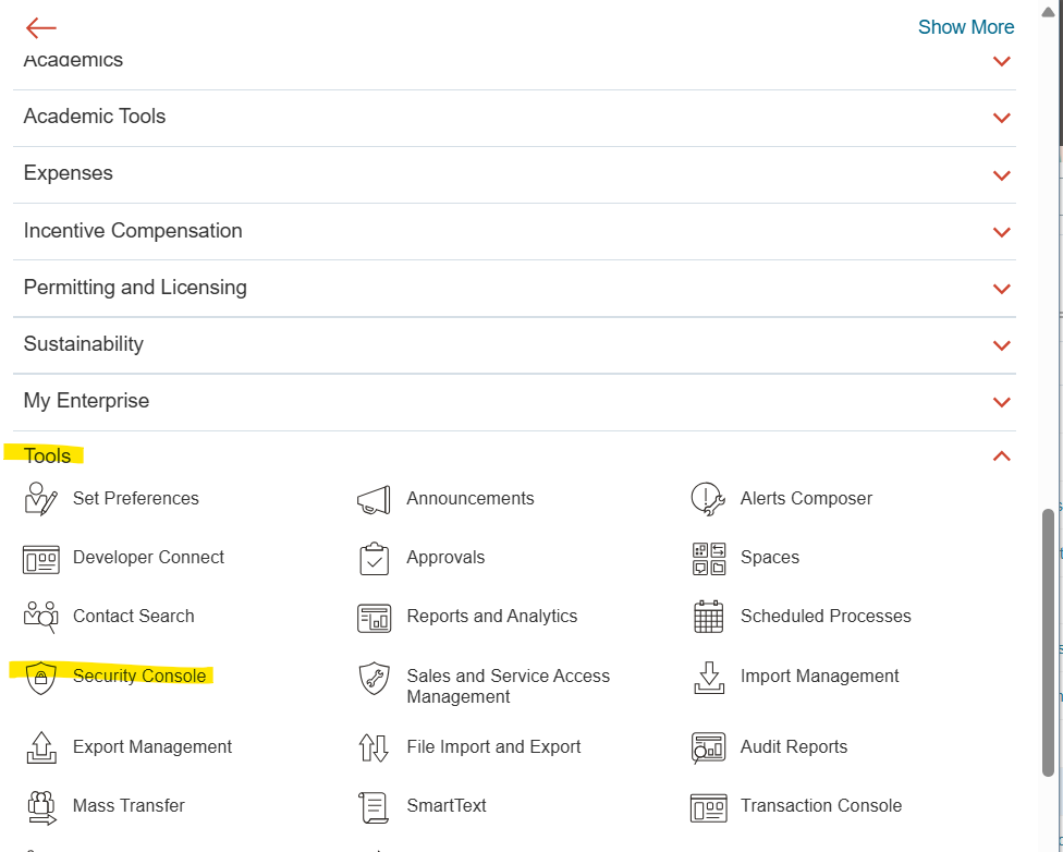 Select Security Console from Tools