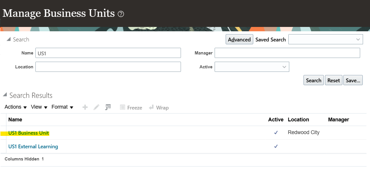 Select Business Unit from task list