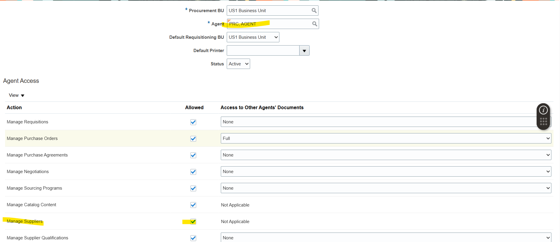 Supplier Option is enable for Procurement Agent