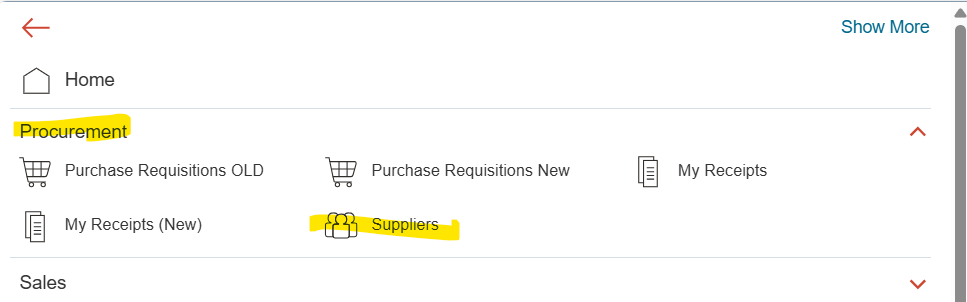 Navigate to Procurement 🡪 Suppliers