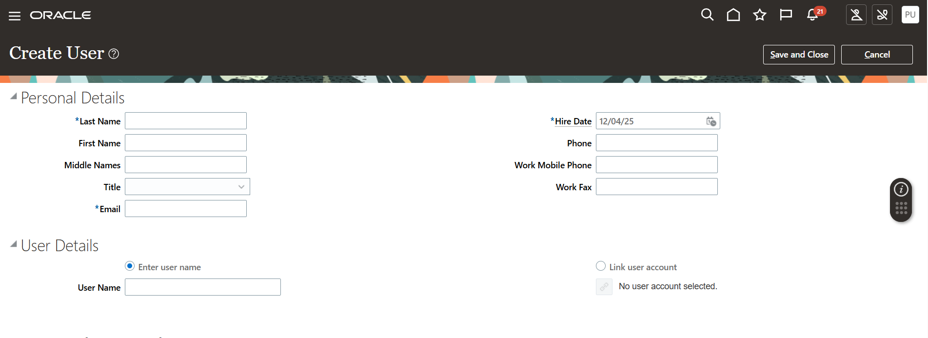Add New Employee/User