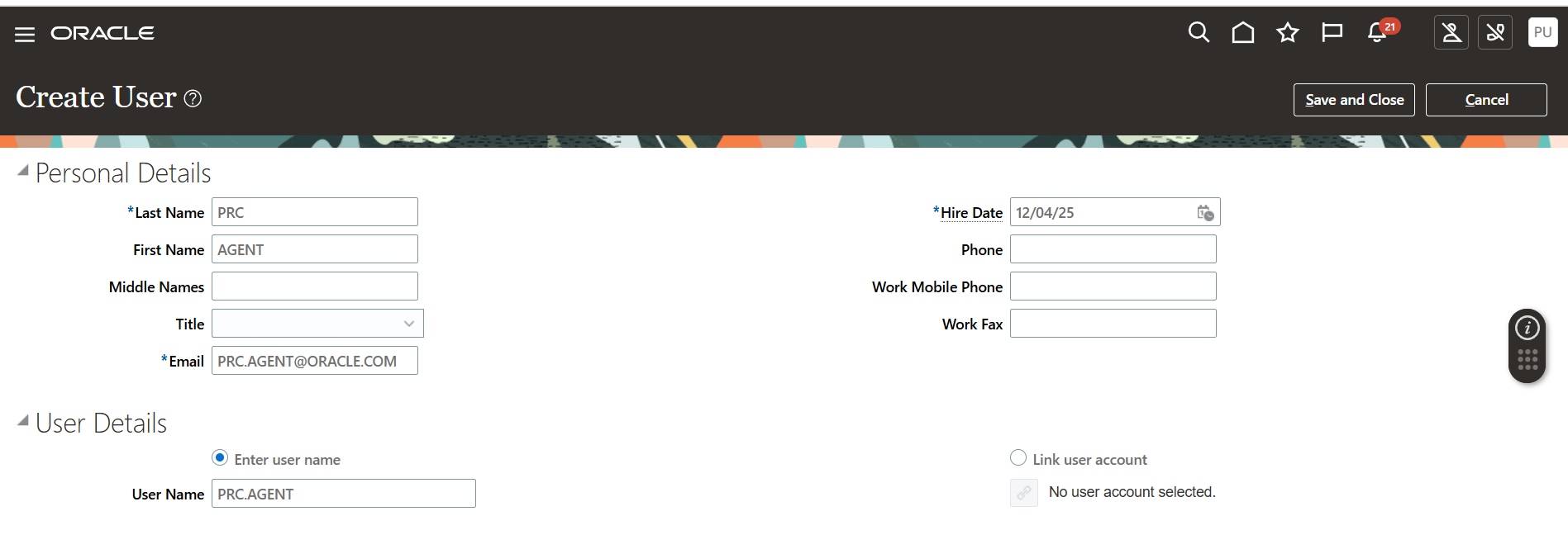 Successfully access new user