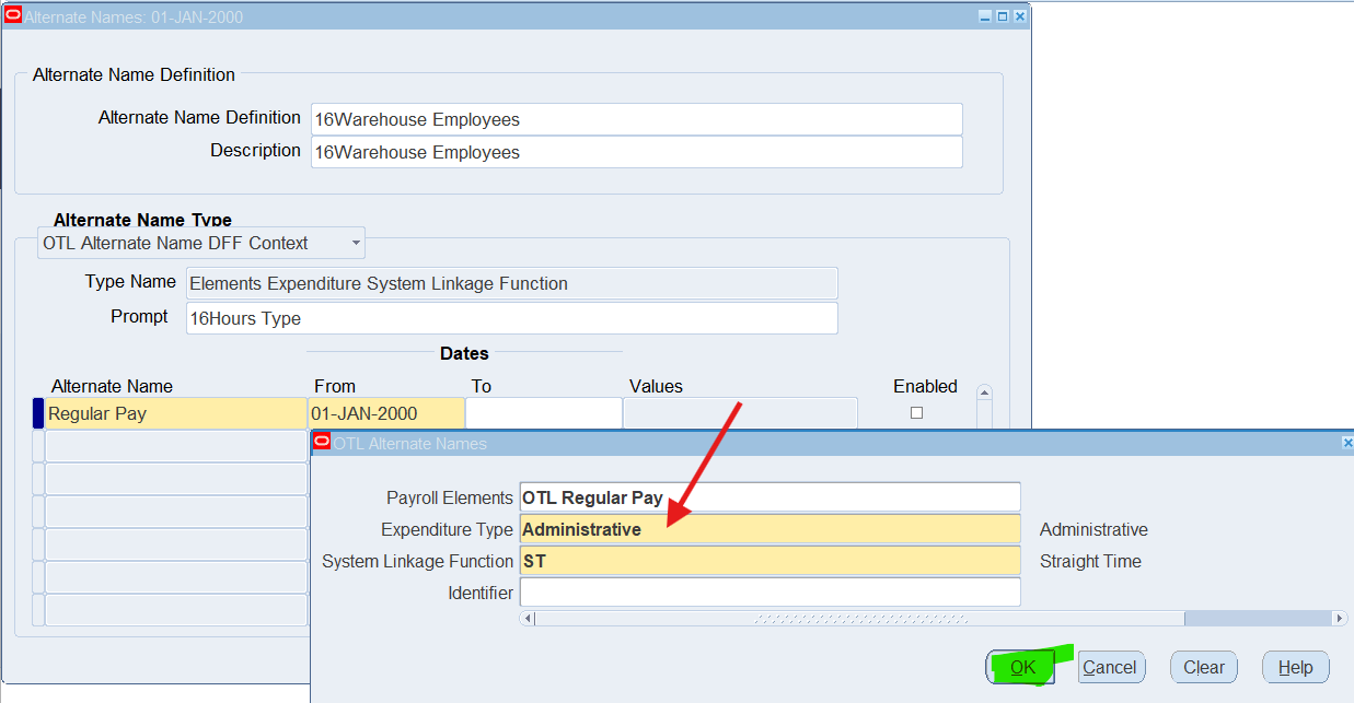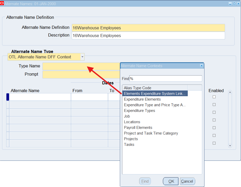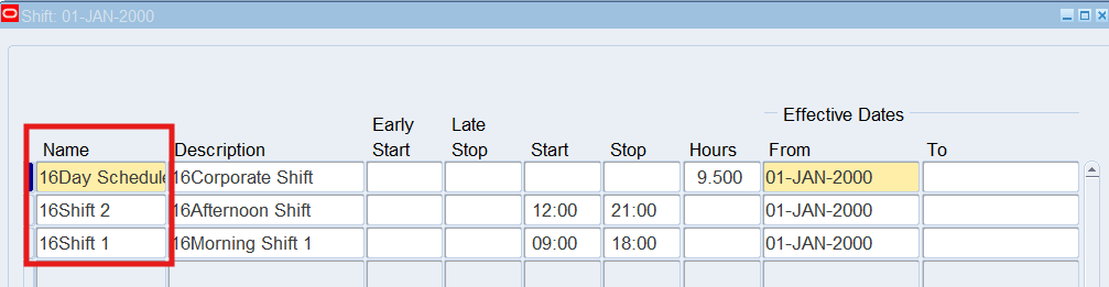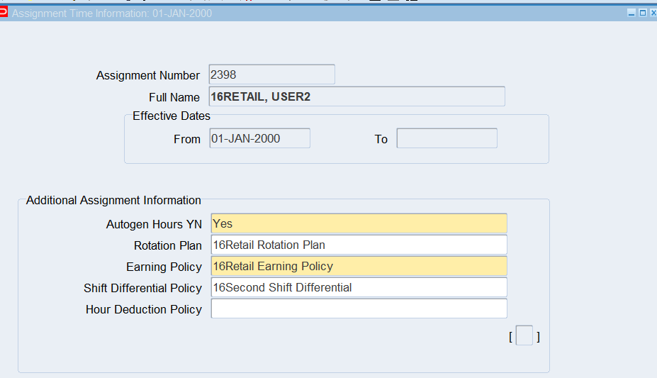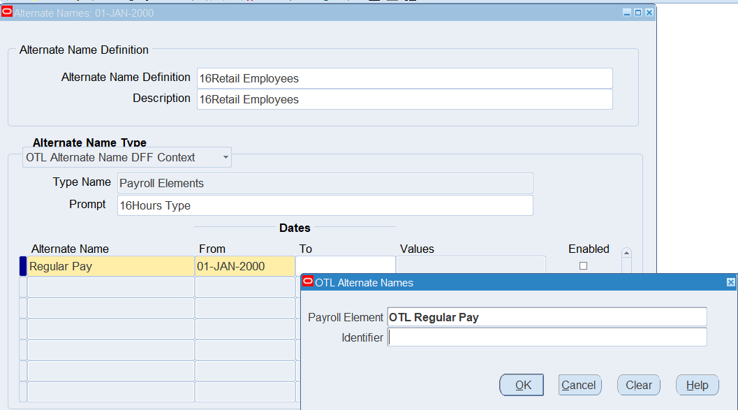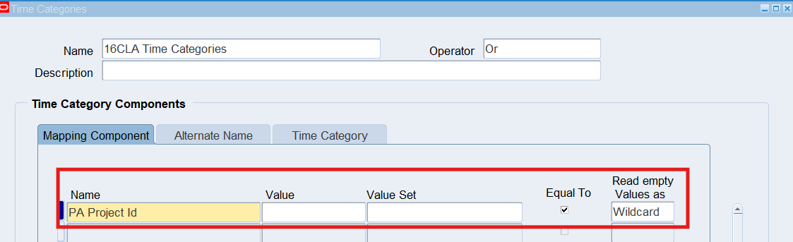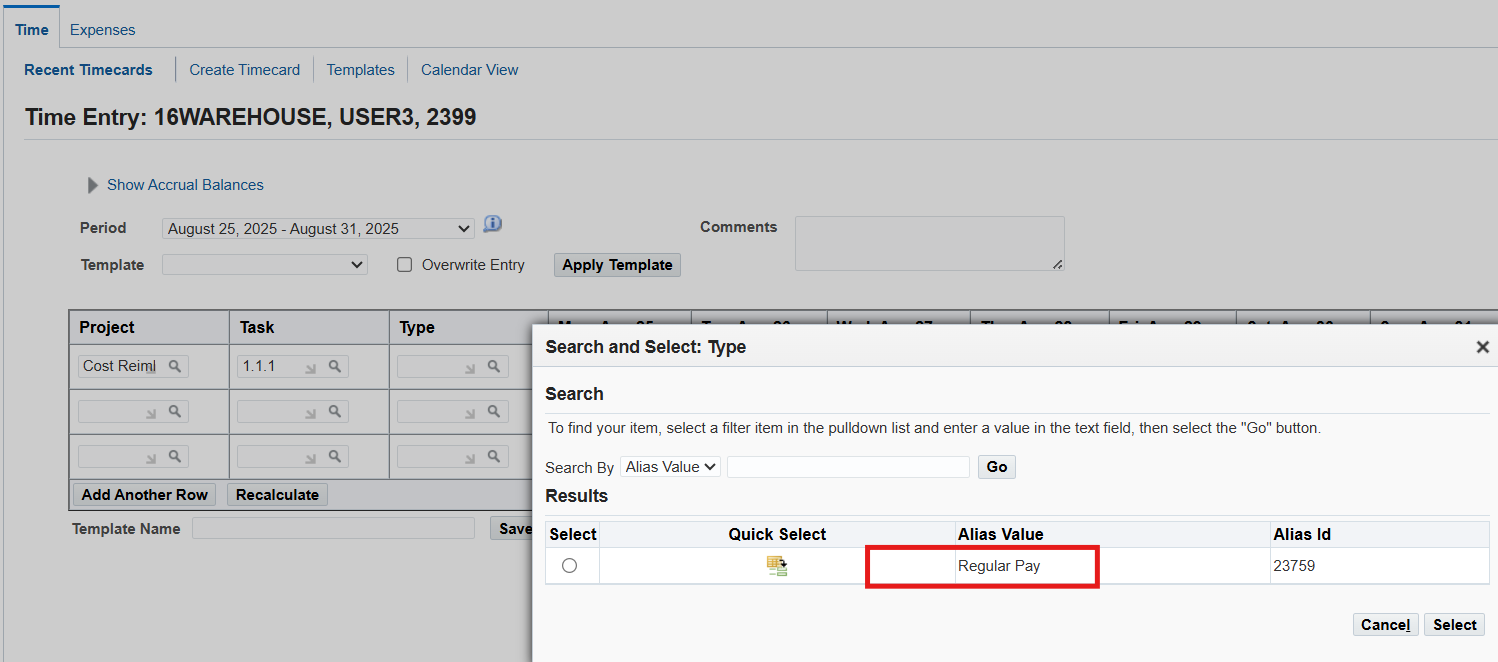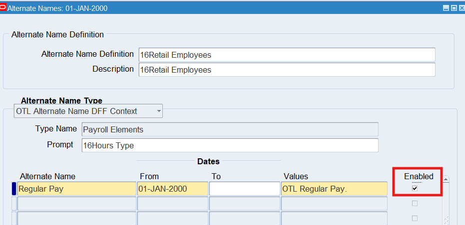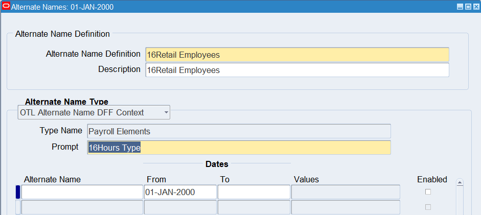 16CLA-Timecard Alternate Name Self Service Timecard Alternate Name Set Defined for a User Timecard Alternate Name1 = 16Warehouse Employees