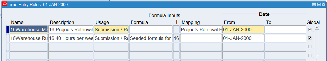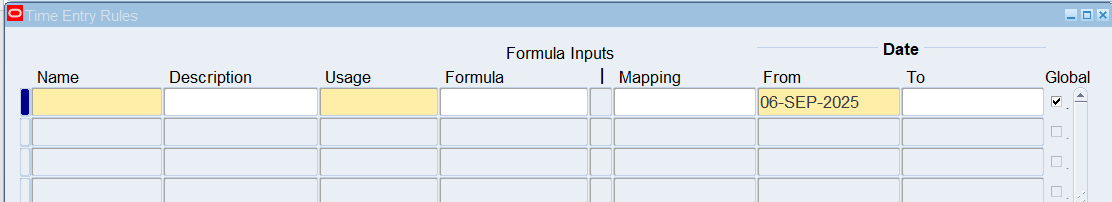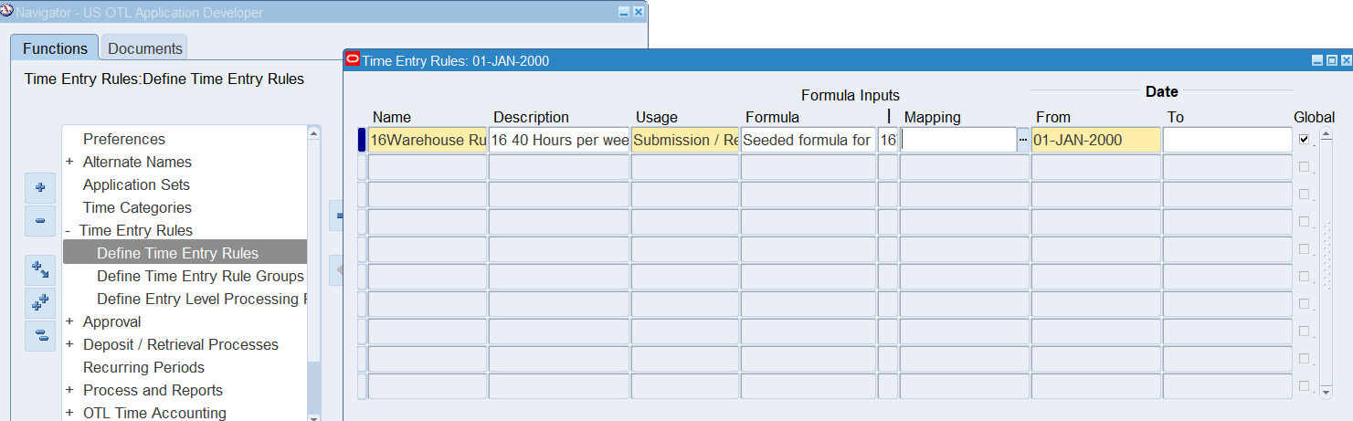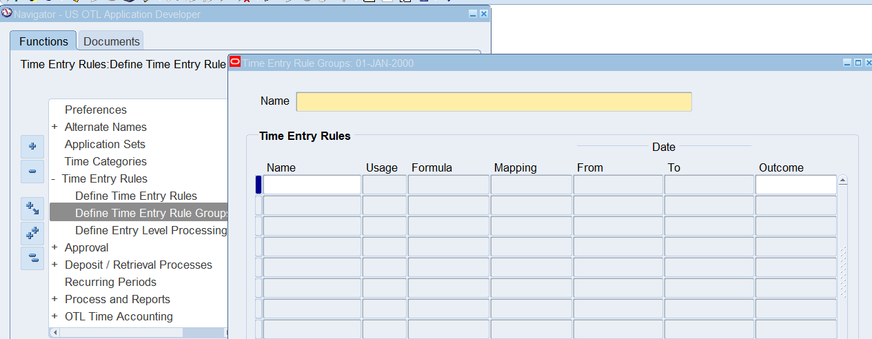Navigation : (N) Time Entry Rules 🡪 Define Time Entry Rule Groups