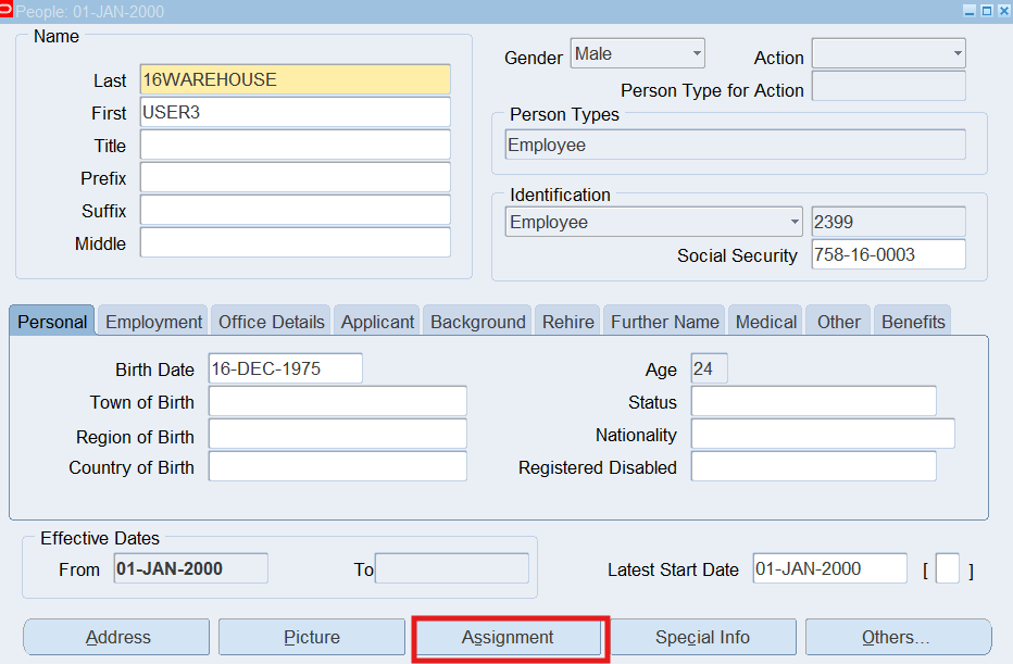 Viewing Employee Assignment Information Folder 144
