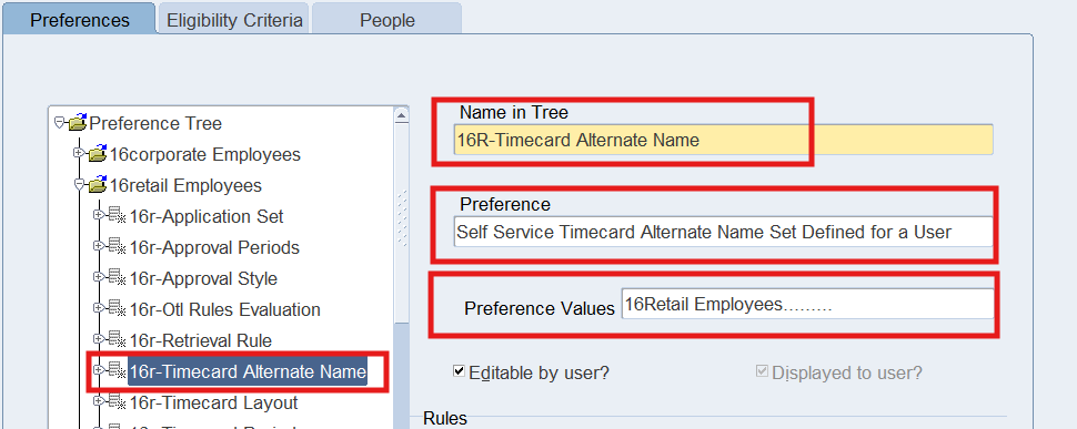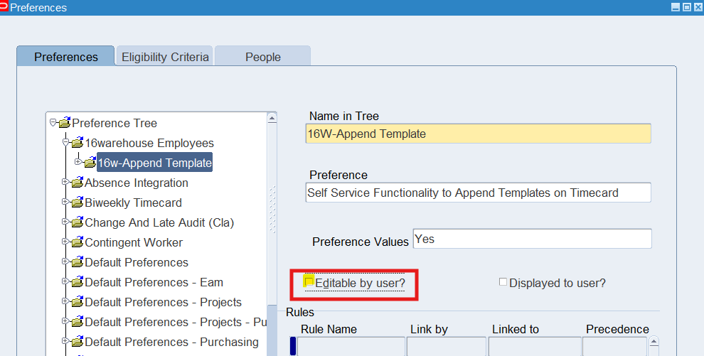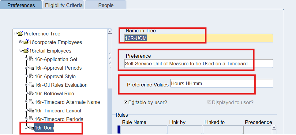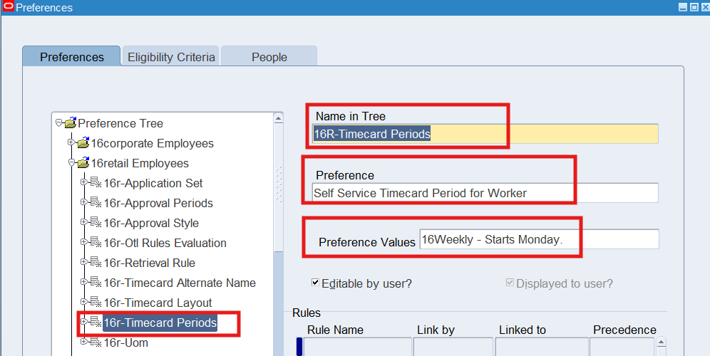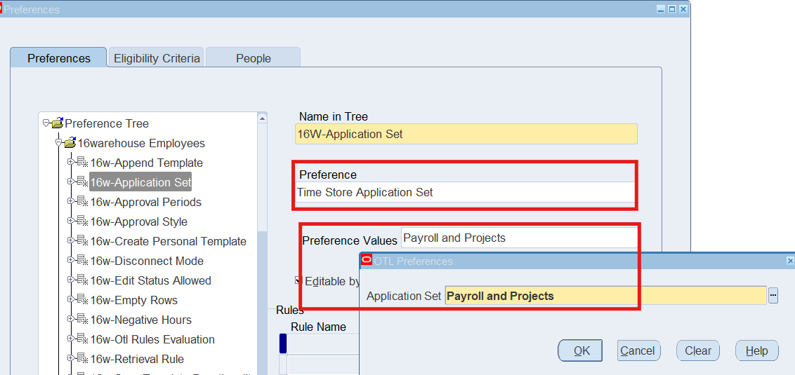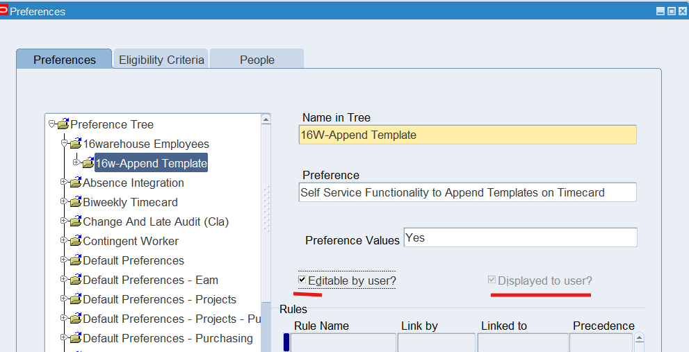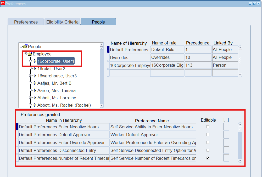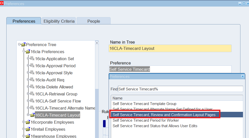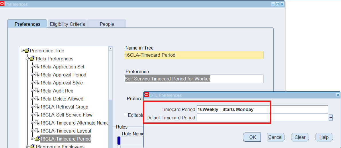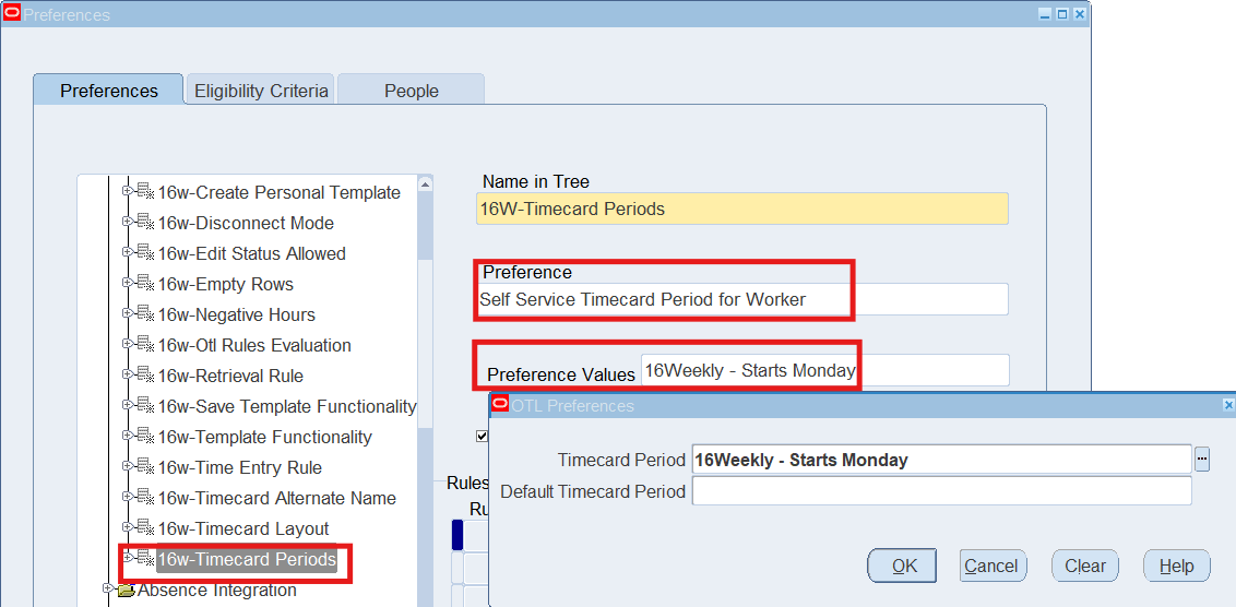 Preferences define many rules about how individuals or groups of workers use the application. Preferences hold rules for the time store and about Self Service timecard. While Oracle Time & Labor deliver predefined preferences you cannot change these rules. However, we can create as many new hierarchies as needed for our business requirements.