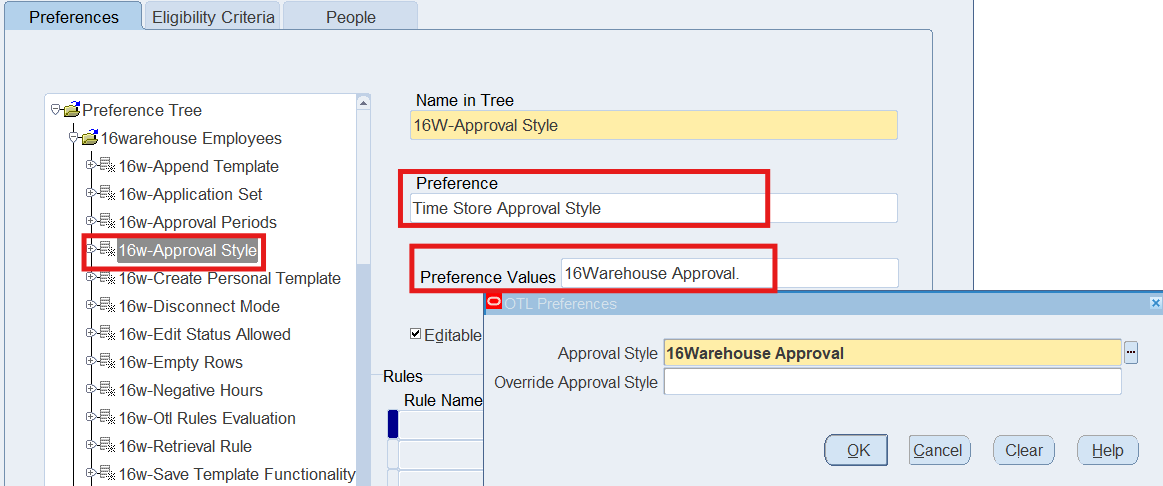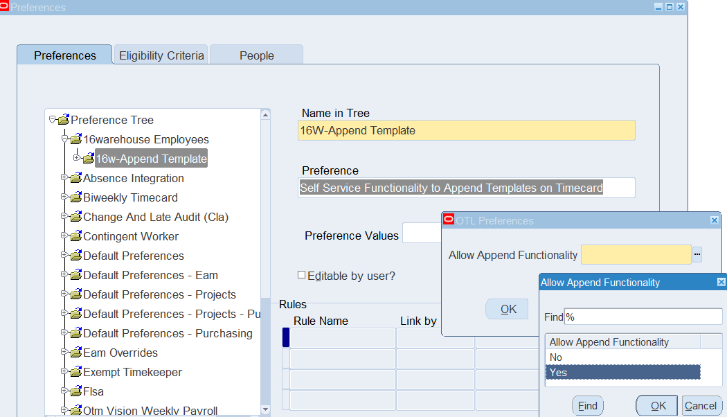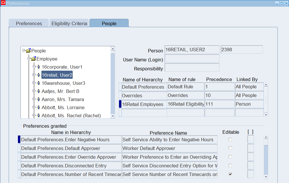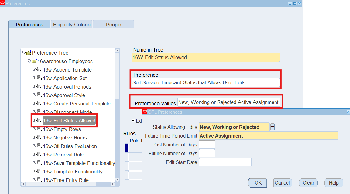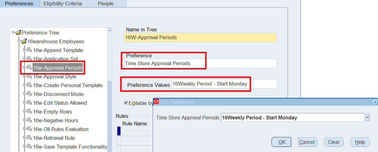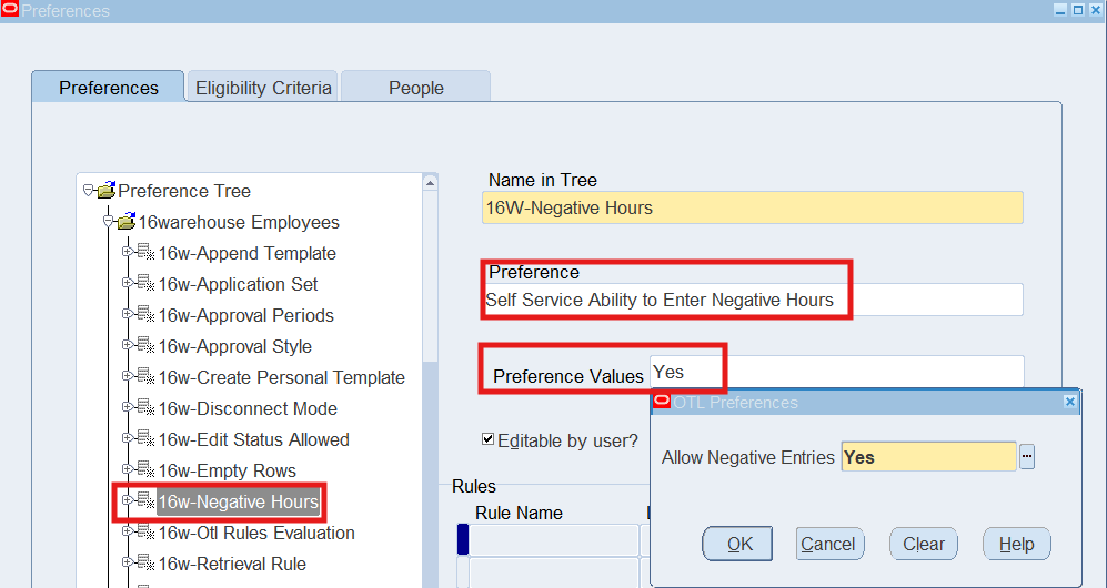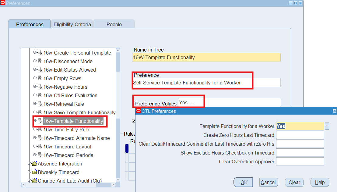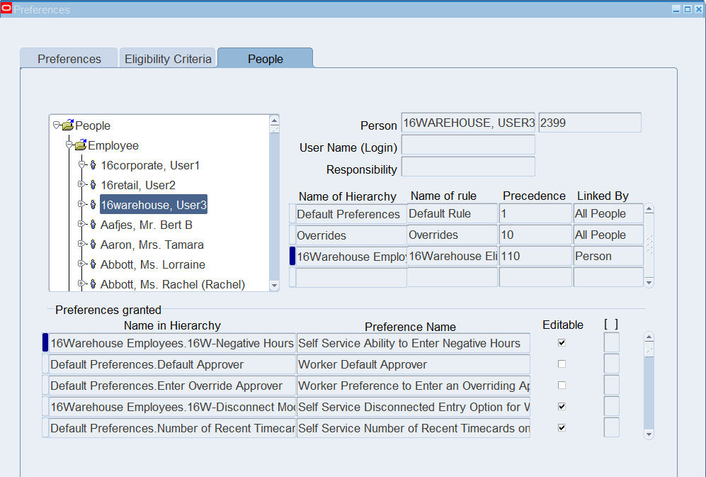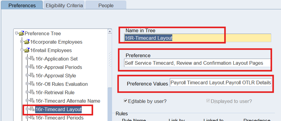 Preferences define many rules about how individuals or groups of workers use the application. Preferences hold rules for the time store and about Self Service timecard. While Oracle Time & Labor deliver predefined preferences you cannot change these rules. However, we can create as many new hierarchies as needed for our business requirements.