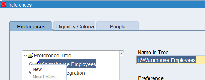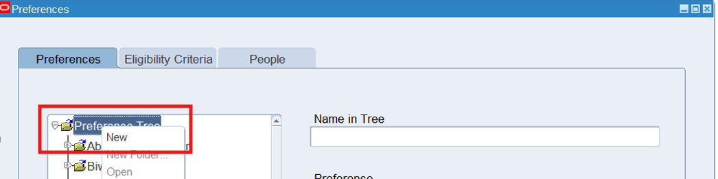 Right-click on the Preference Tree node and select “NEW”