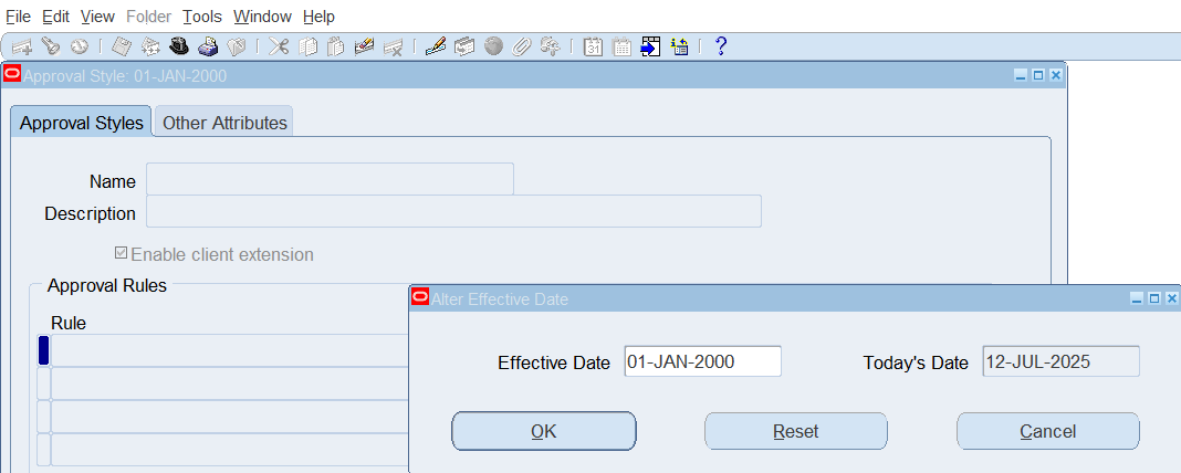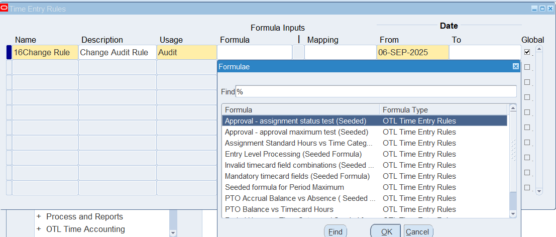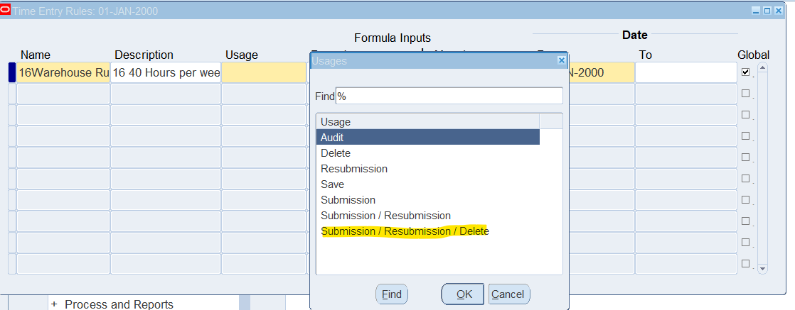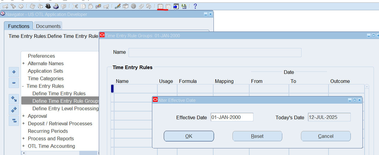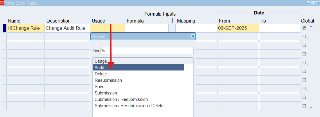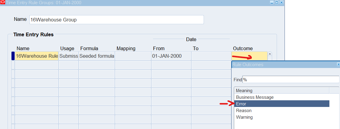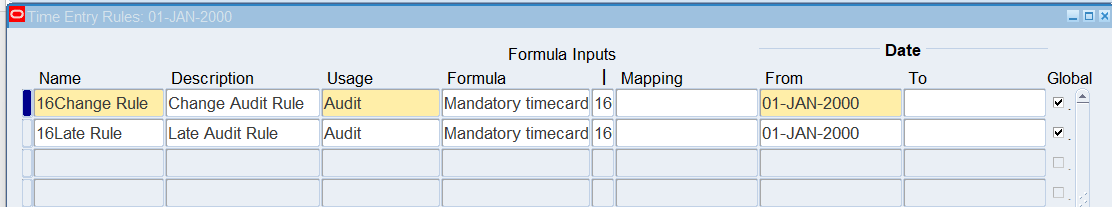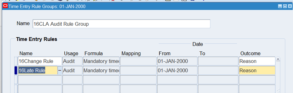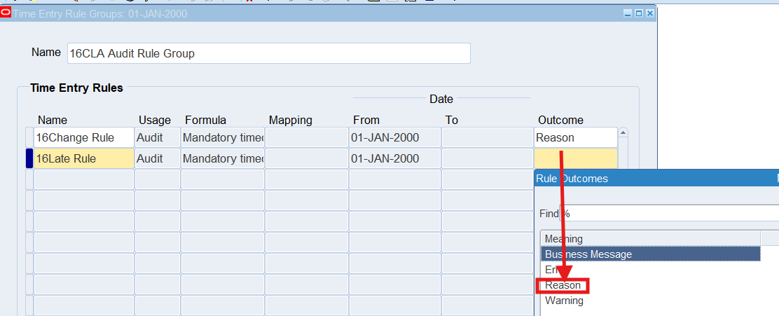 2. Once define time entry rules for change and late audit, will need to group rules using Time Entry Rule Groups window and make the Outcome equal to Reason to indicate Change and Late Audit