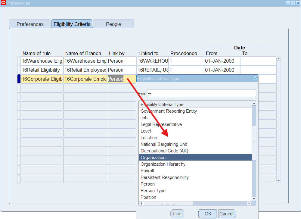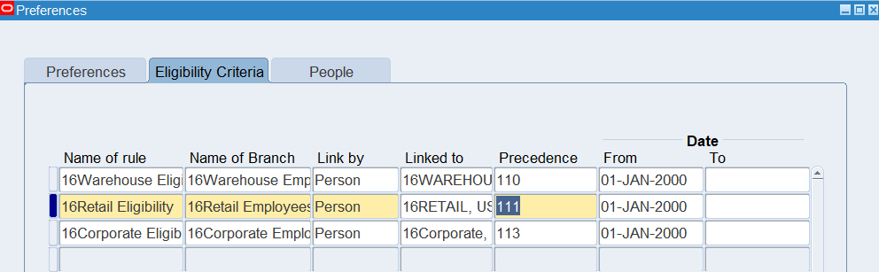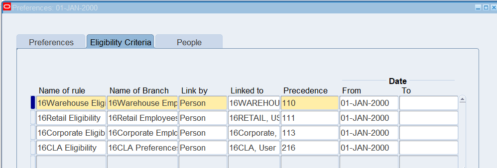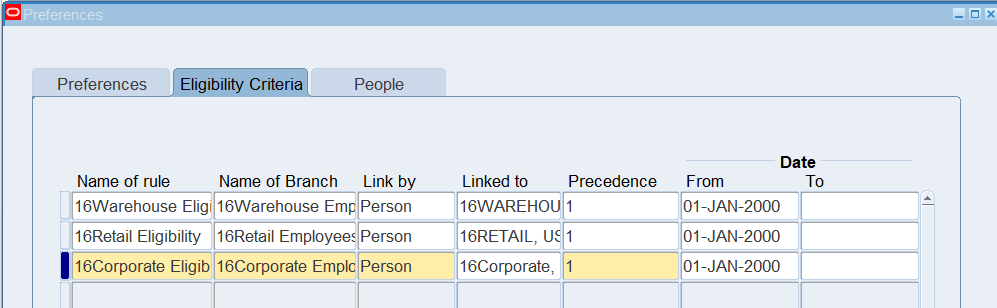 Defining Eligibility Criteria for an employee