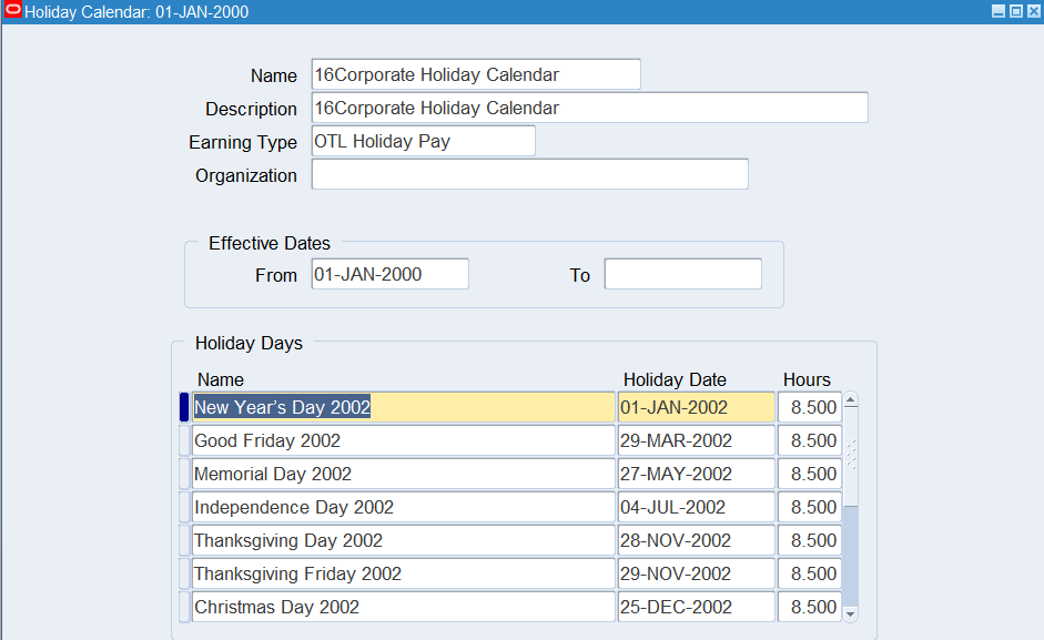 Defining a Holiday Calendar for Corporate Employees 108