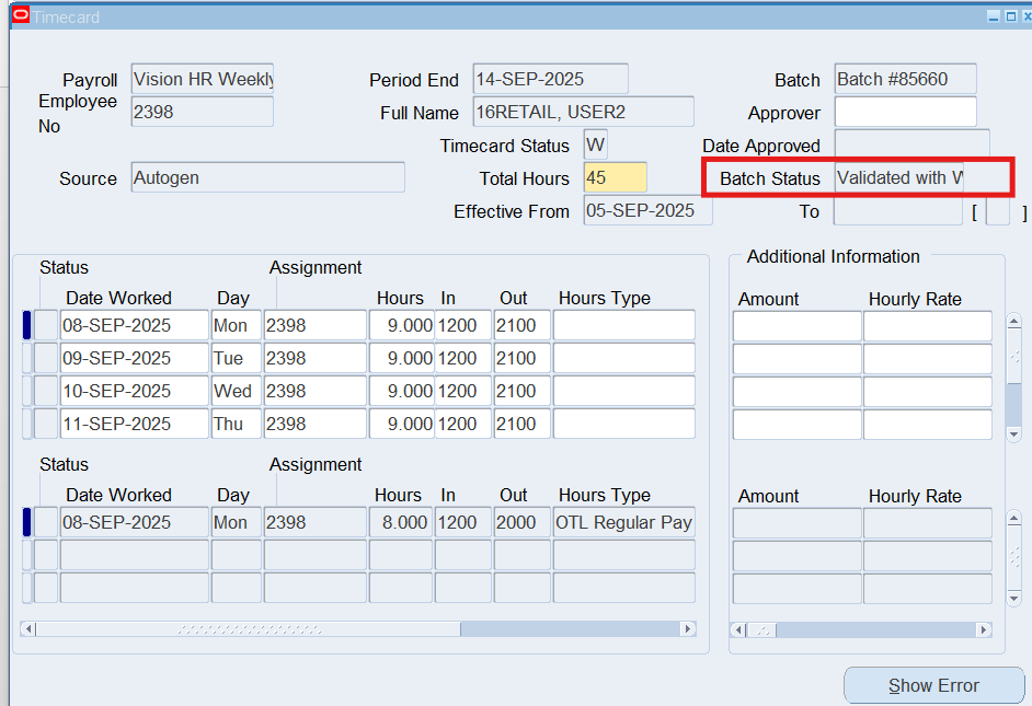 Viewing Auto generated Timecards 148