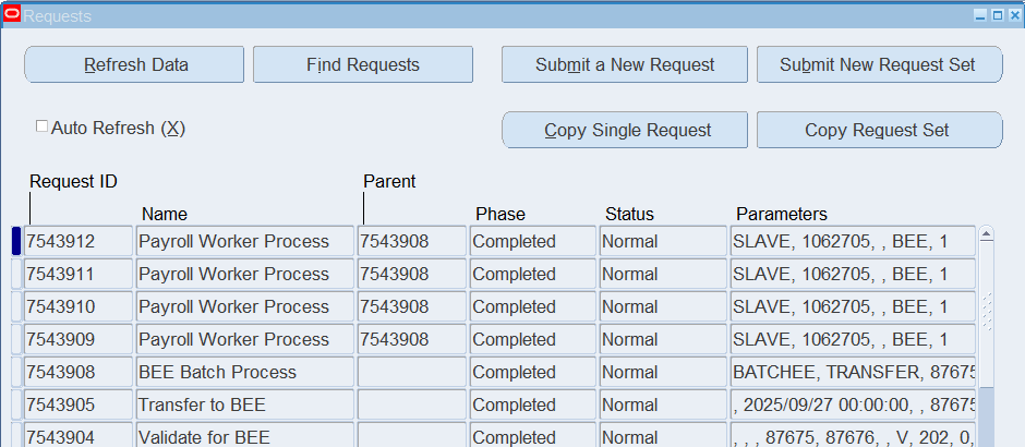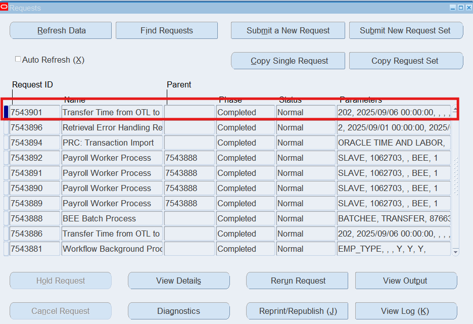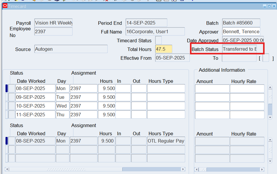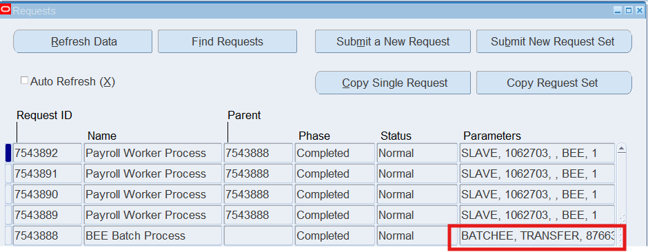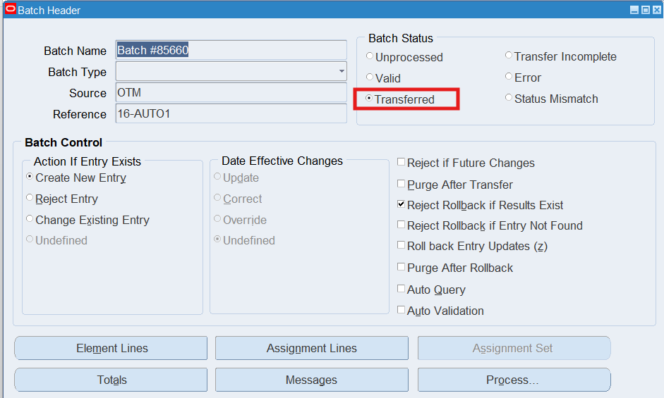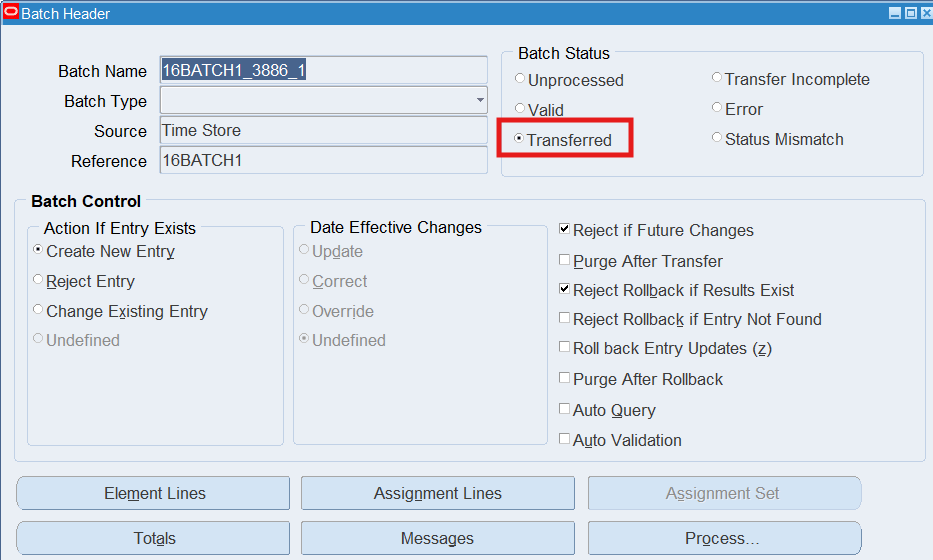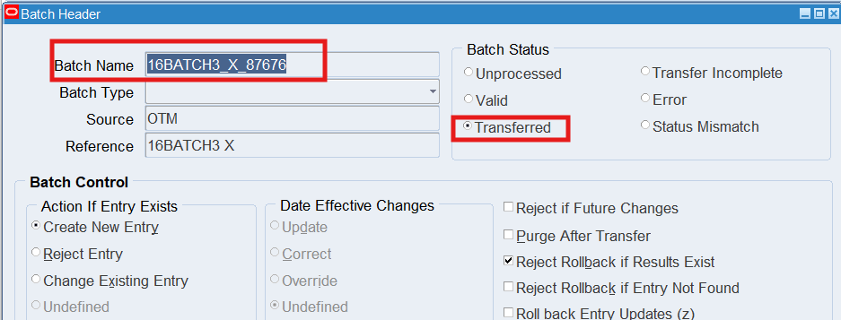 Note: Review the Batch Status, it should now display “Transferred”