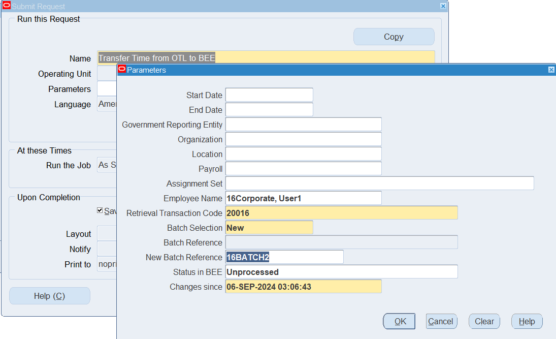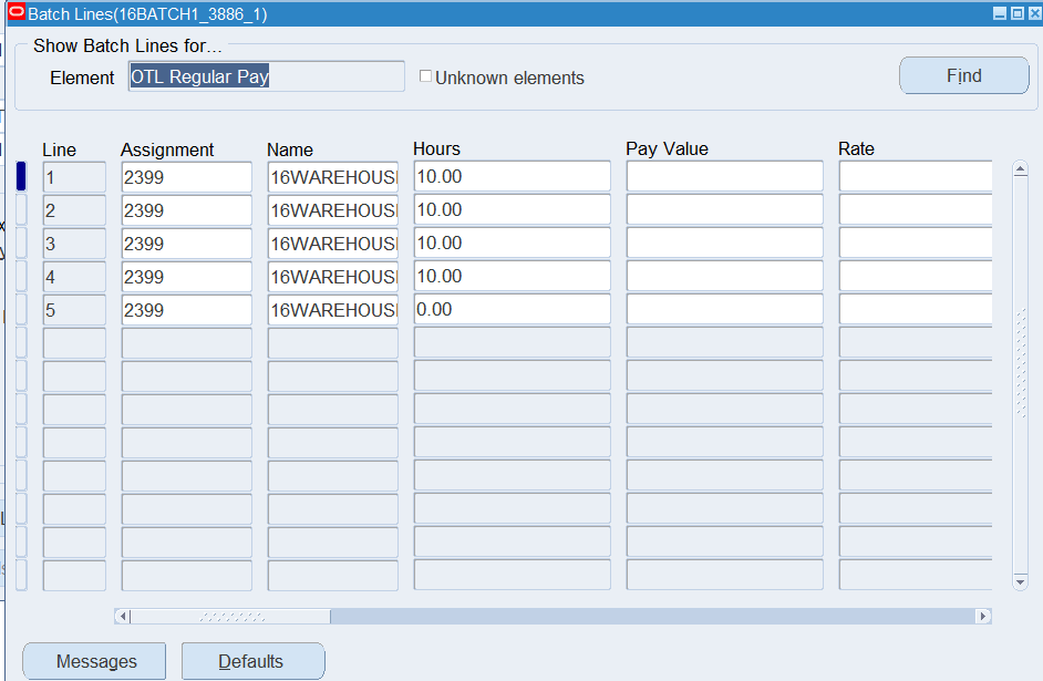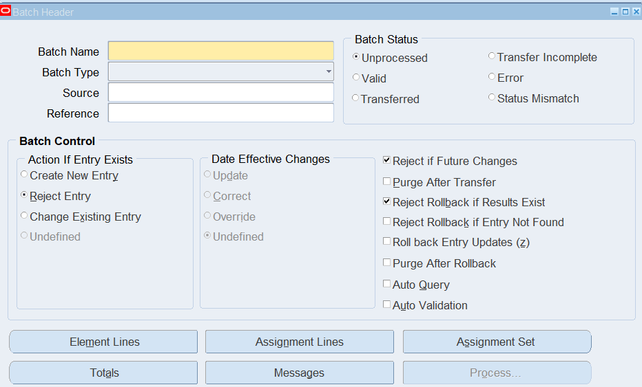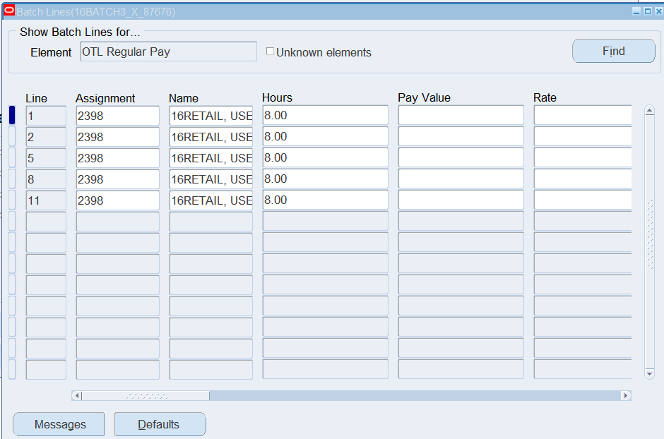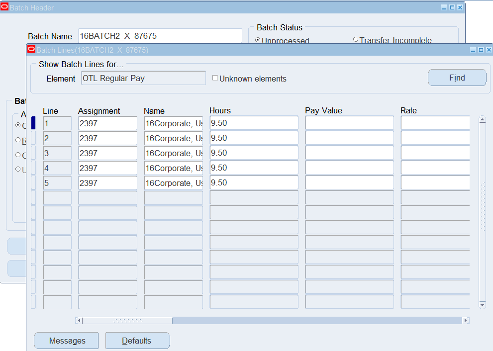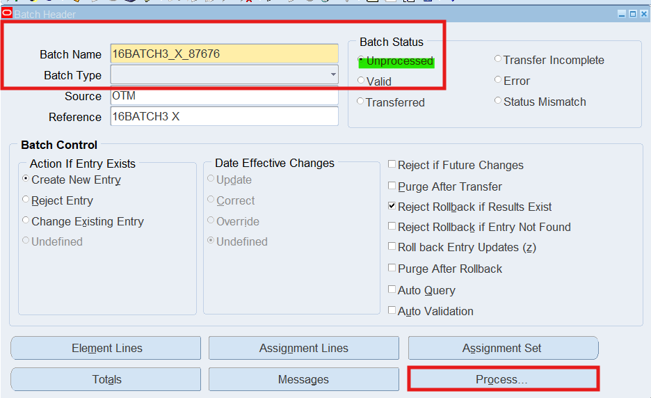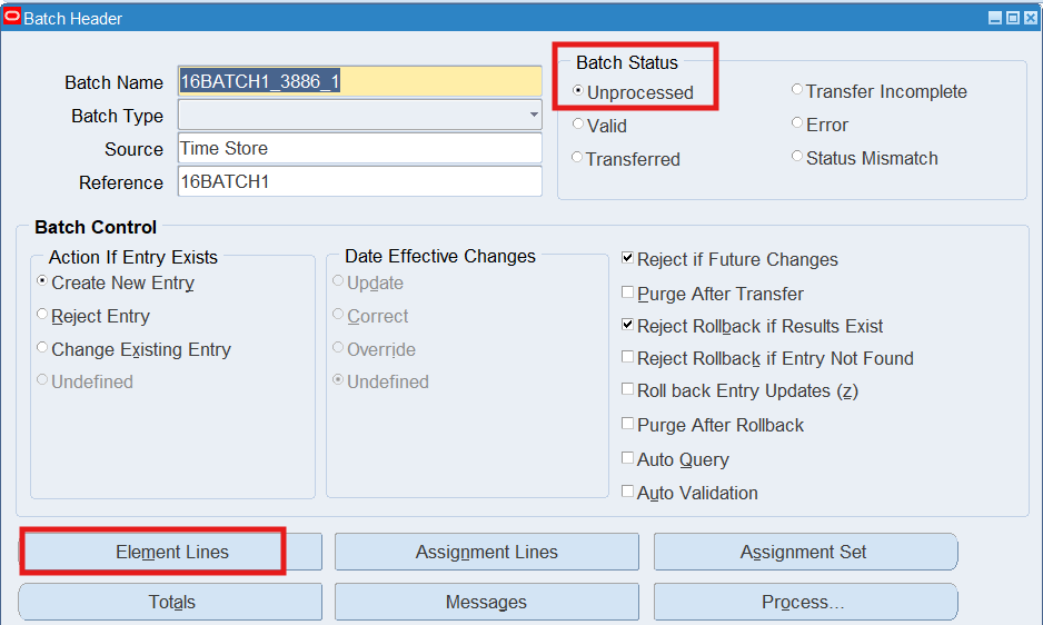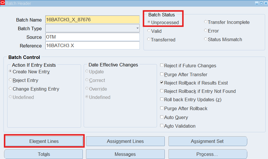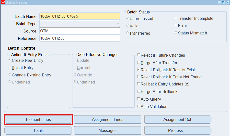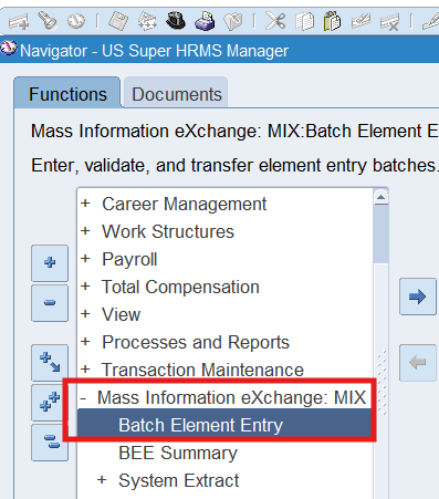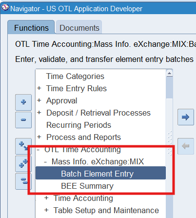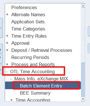 Navigation : (N) OTL Time Accounting 🡪 Mass Info. eXchange:MIX🡪Batch Element Entry