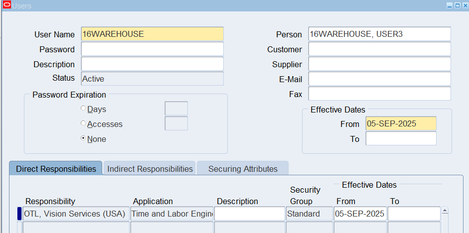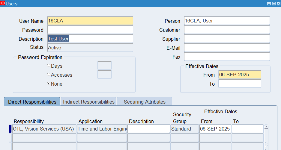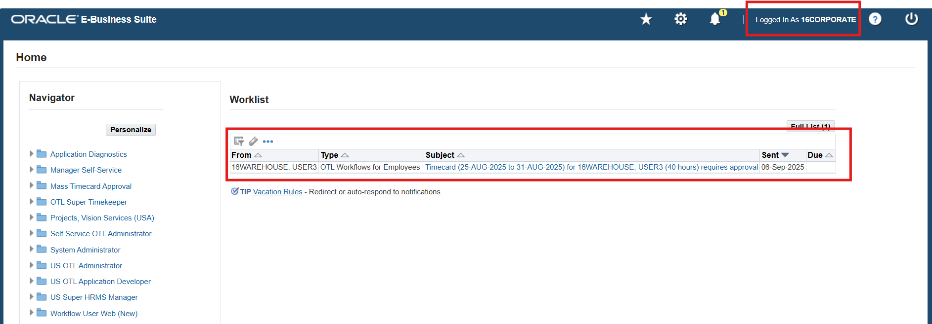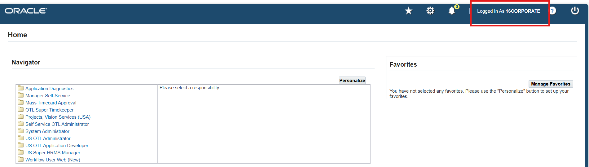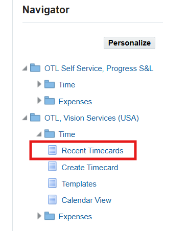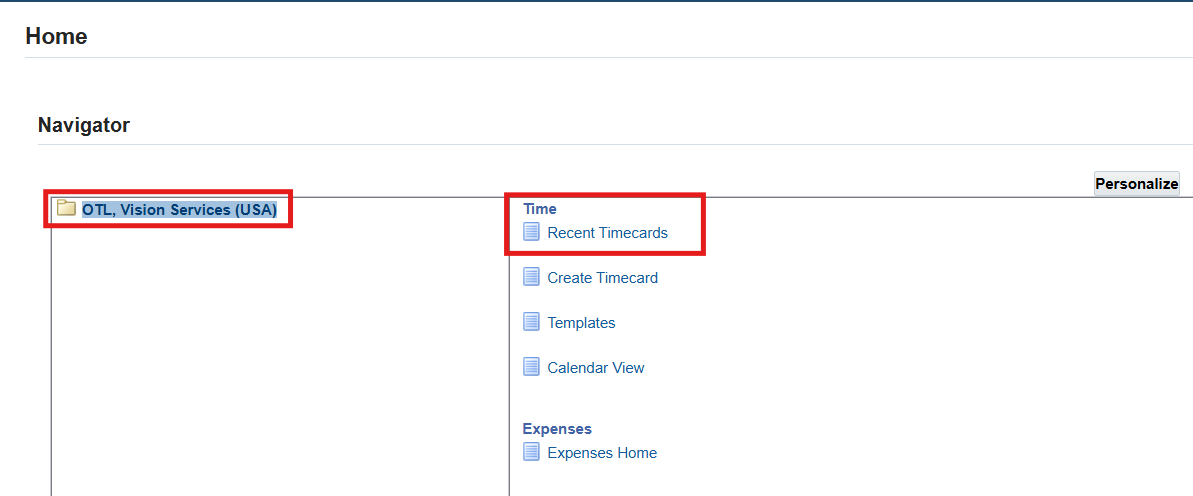 1. Logon to Self Service using 16CLA sign on, and choose the OTL, Vision Services (USA) responsibility