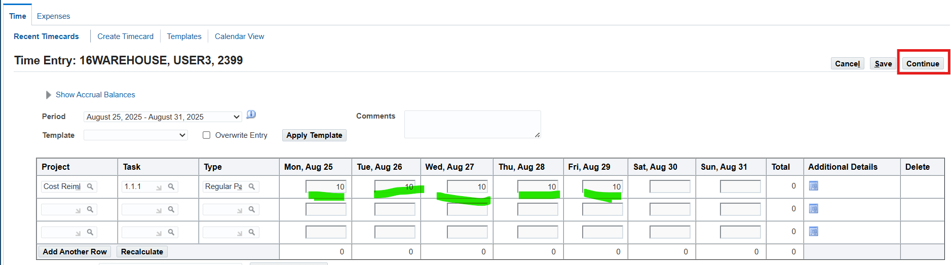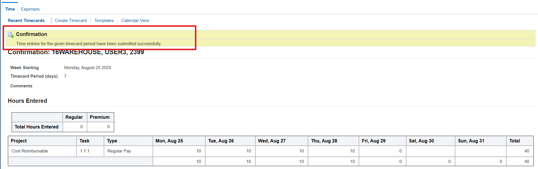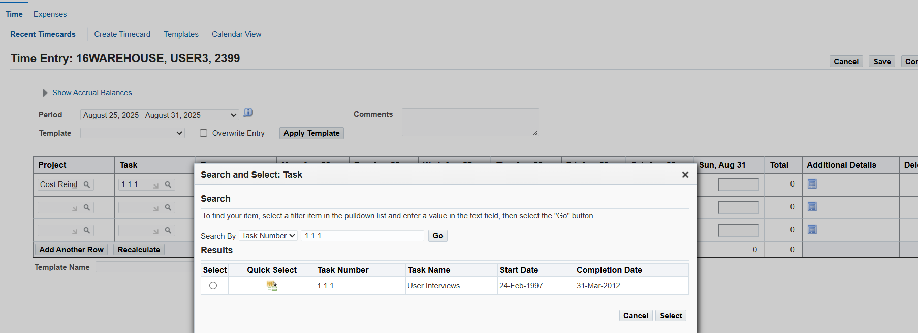 Practice 23: Entering a Timecard for Change and Late Audit