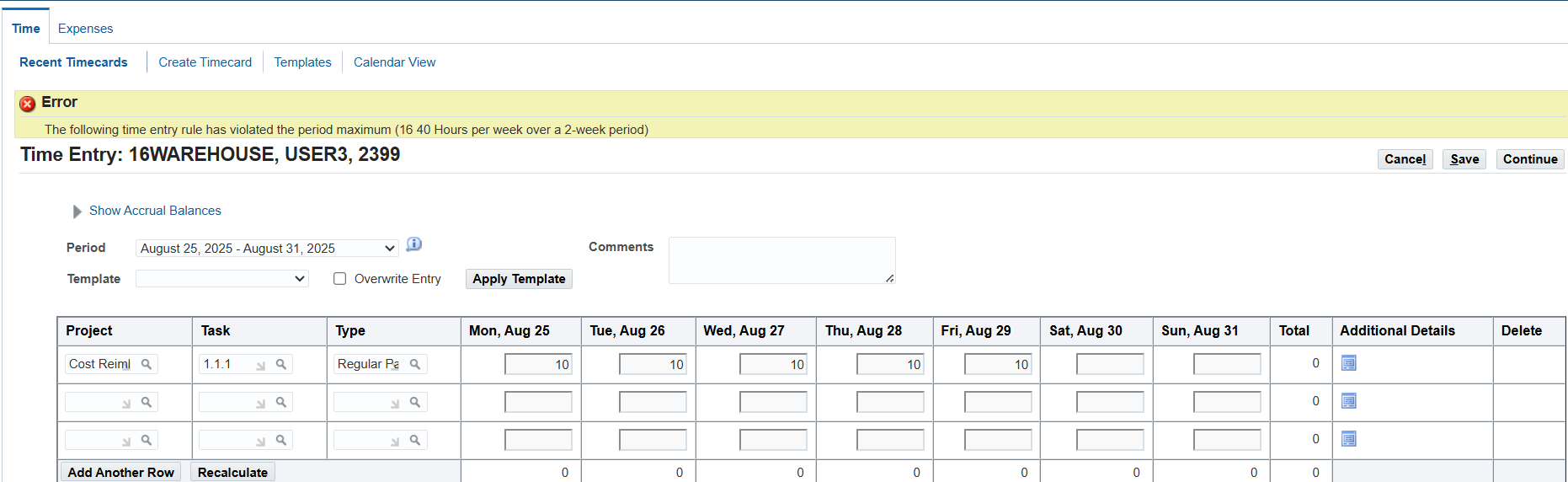 Defining Time Entry Rules – Using Period Maximum Formulas 8
