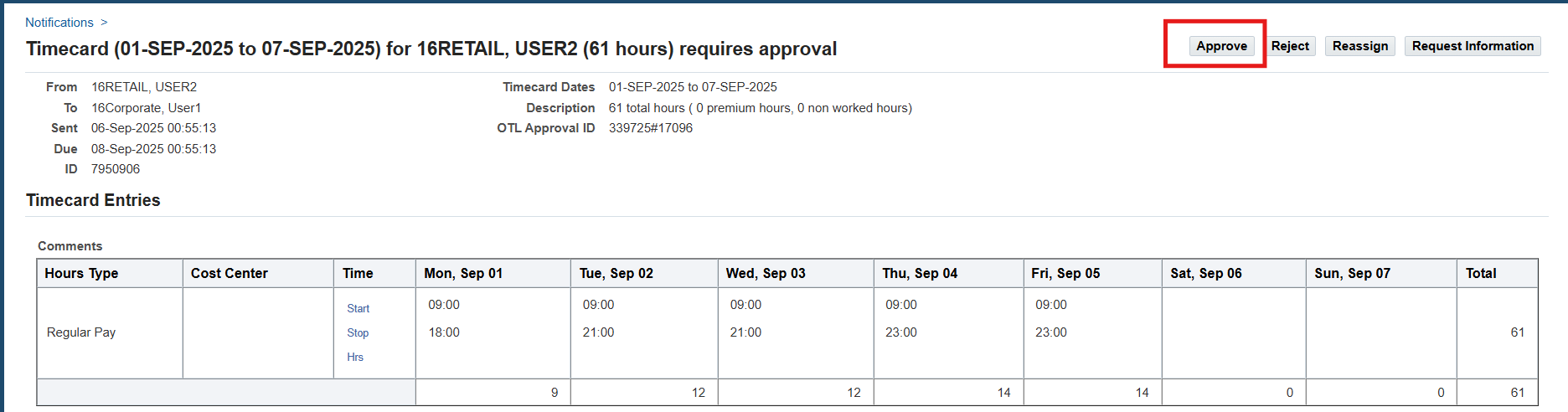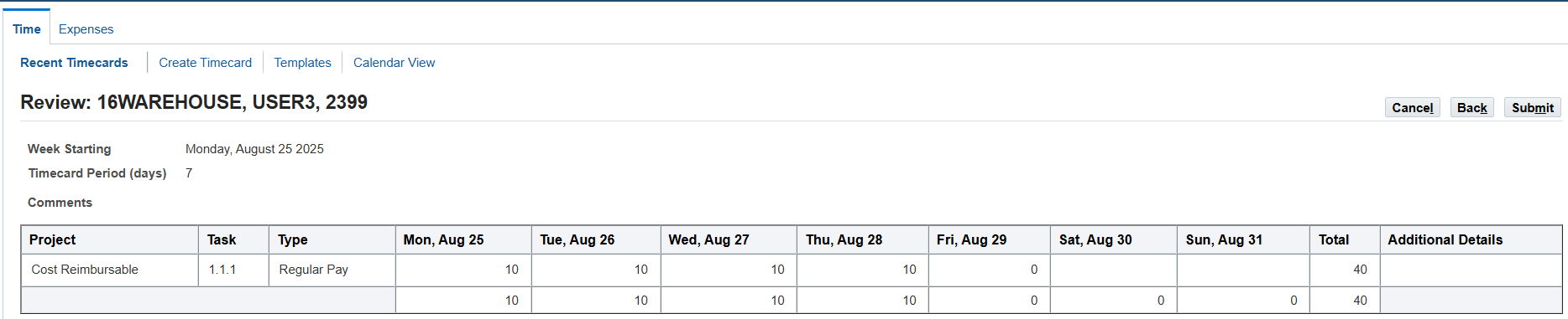 Navigation : (N) View 🡪 List 🡪 Review Employee Timecards