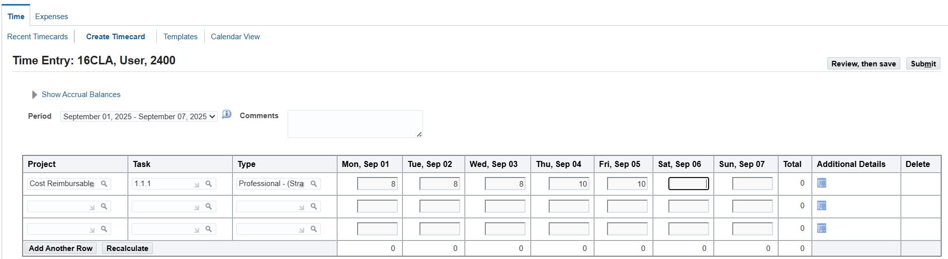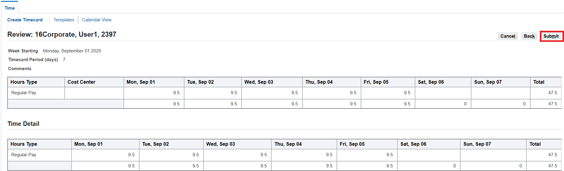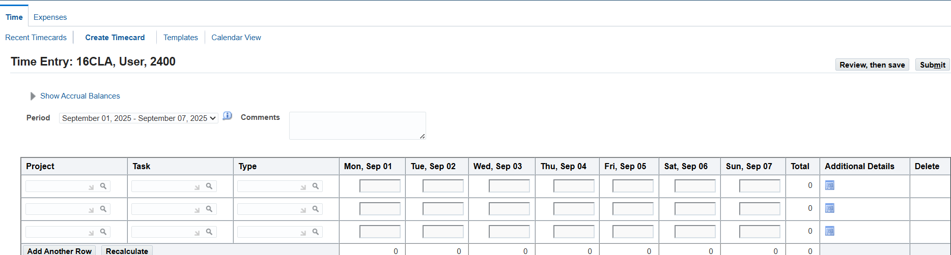 Run the missing timecard report for the period other than submitted time and review employee’s time using the Review Employee Time Folder