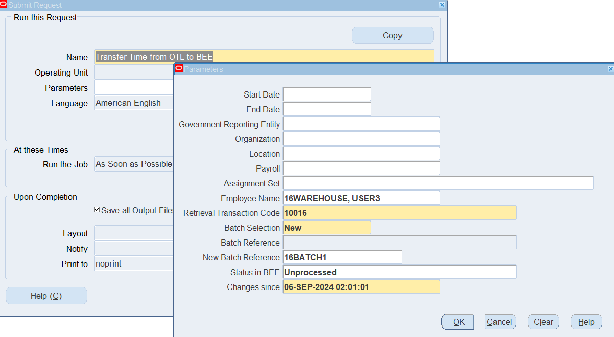 Transferring Timecards to BEE