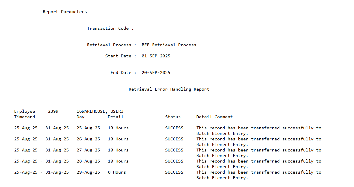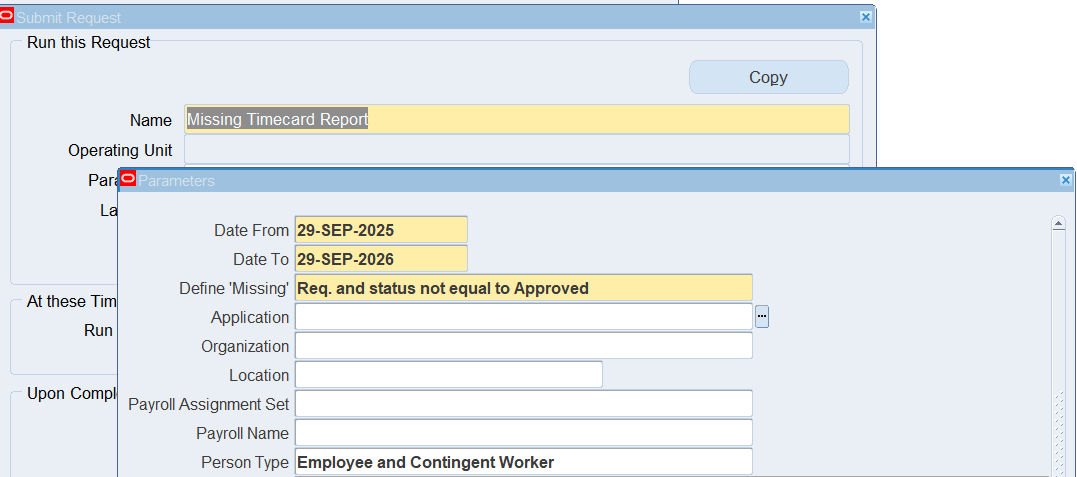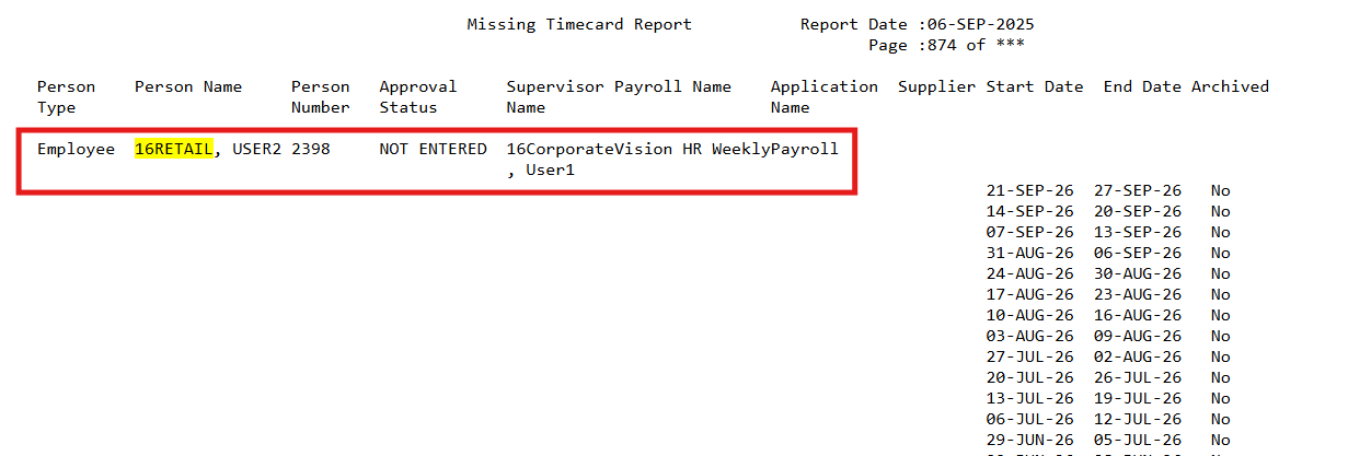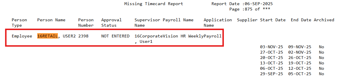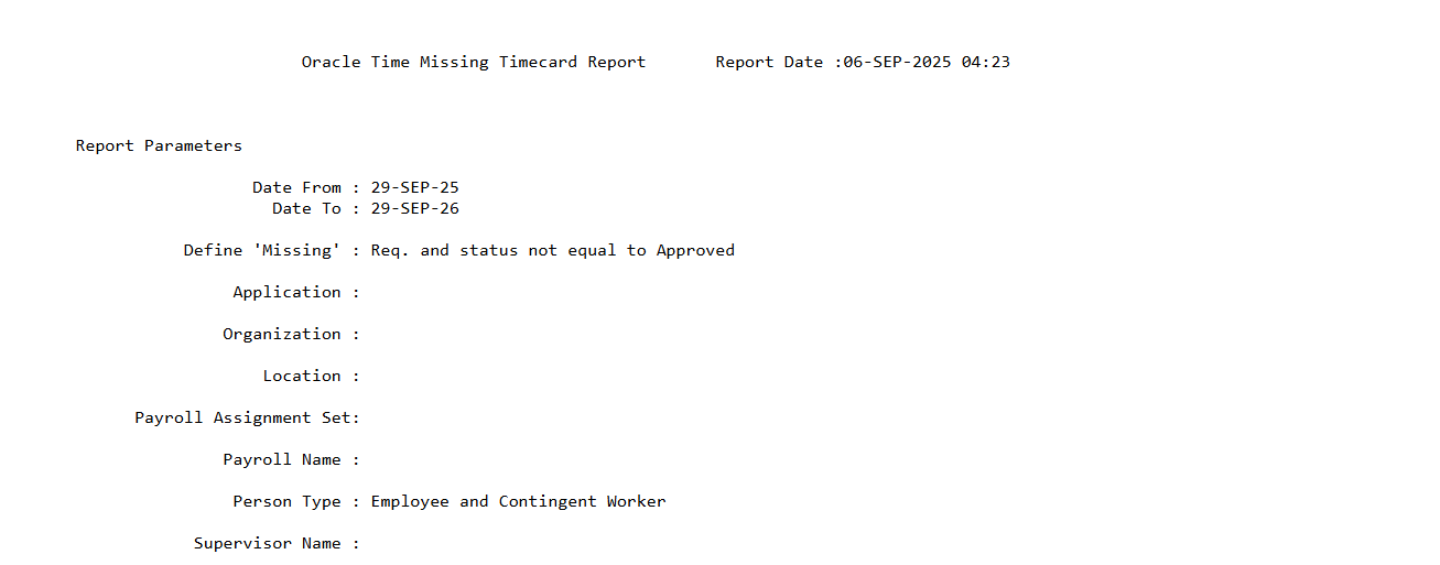 Report : Missing Timecard Report (Application is Oracle Time and Labor)
