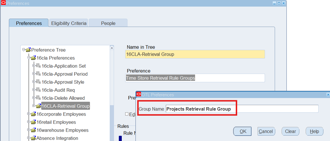 16CLA-Retrieval Group Time Store Retrieval Rule Groups Group Name = Projects